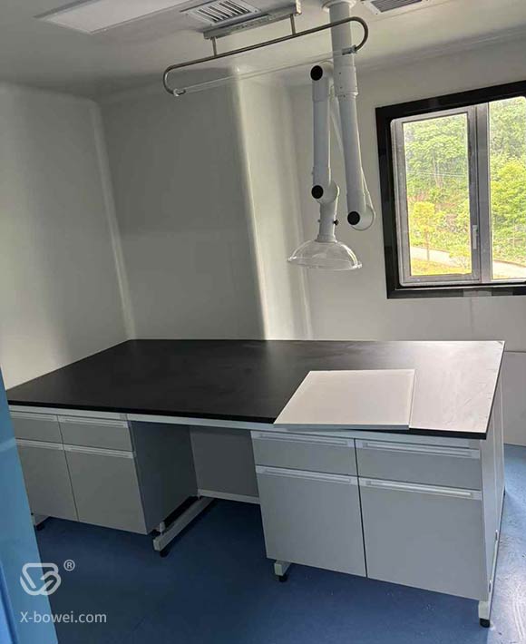 实验台安装项目:边台、中央台、通风柜、试剂架、药品柜、器皿柜、万向抽气罩、原子吸收罩、滴水架、洗眼器、插座、水槽龙头等配件